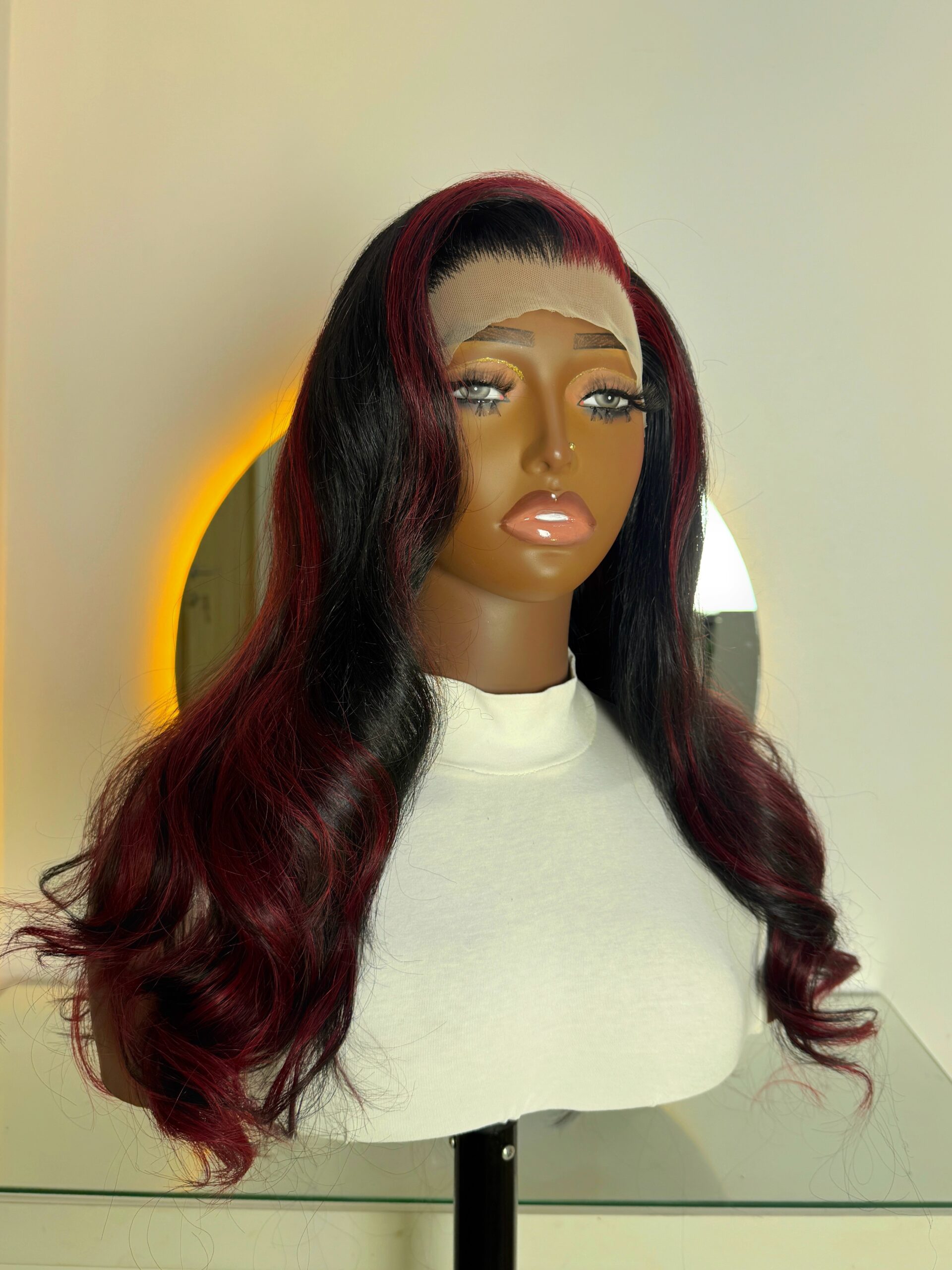 * Dimensional Color: Features rich Burgundy Highlights expertly placed against the deep black base. This coloring technique adds spectacular warmth, multi-tonal dimension, and depth that instantly elevates the look and catches the light beautifully.